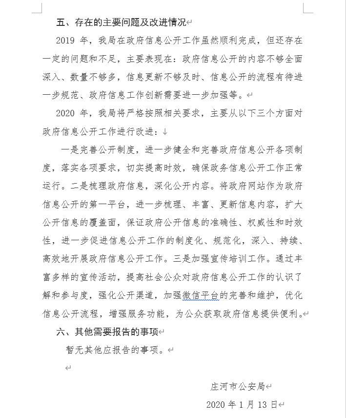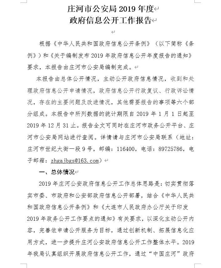 庄河市公安局2019年度政府信息公开工作报告