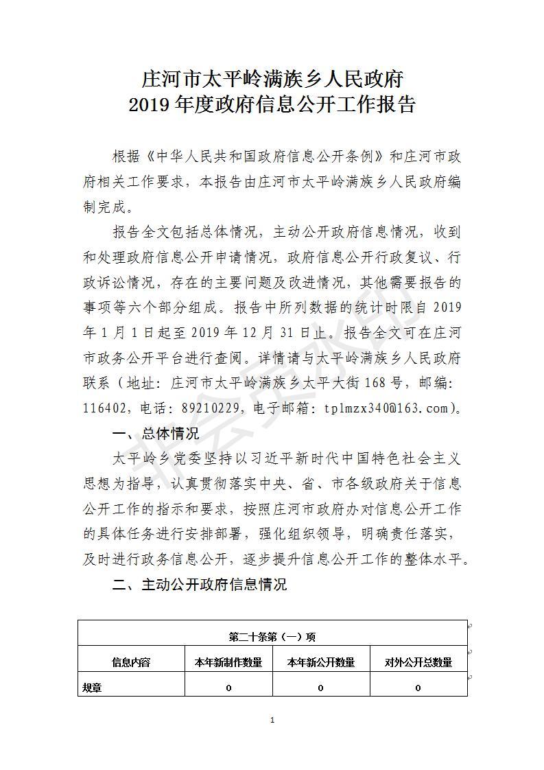 太平岭满族乡2019年度政府信息公开工作报告