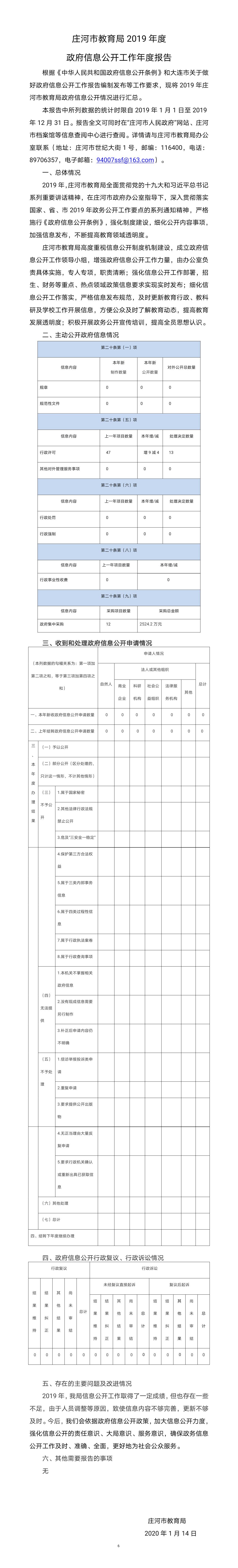 庄河市教育局2019年度政府信息公开工作年度报告