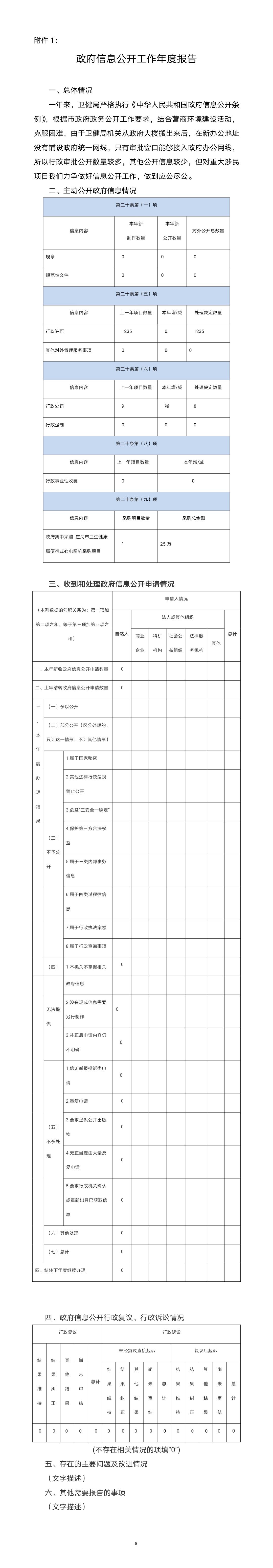庄河市卫生健康局2019年度政府信息公开工作报告