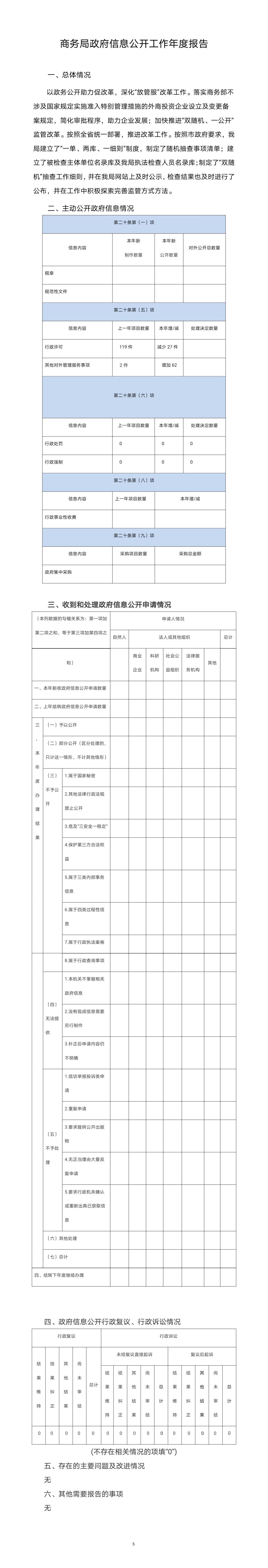 2019庄河市商务局信息公开工作年度报告