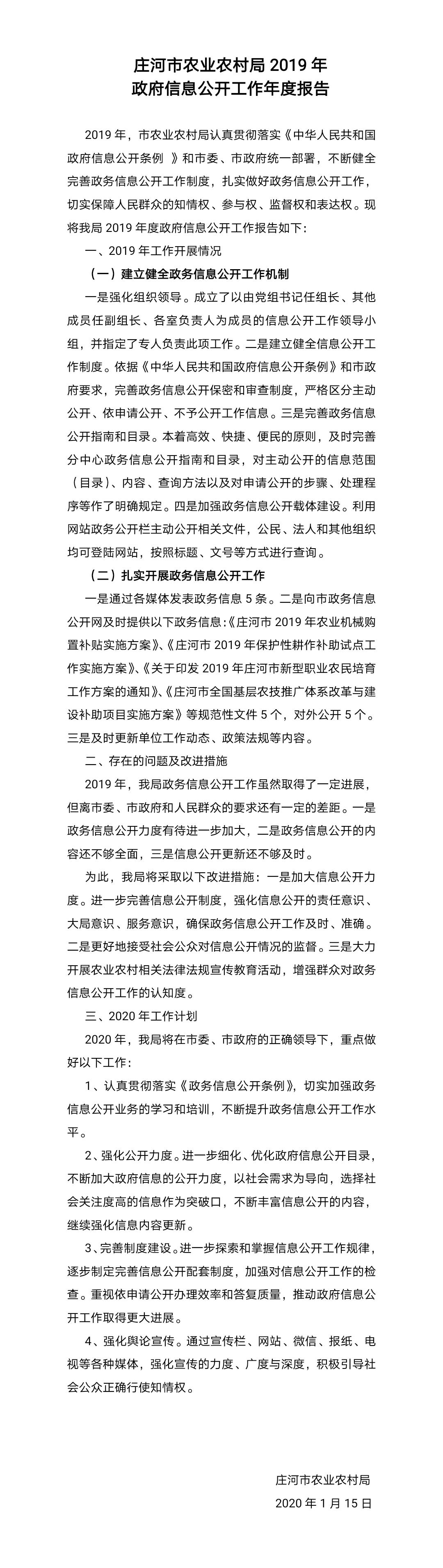 庄河市农业农村局2019年政务信息公开